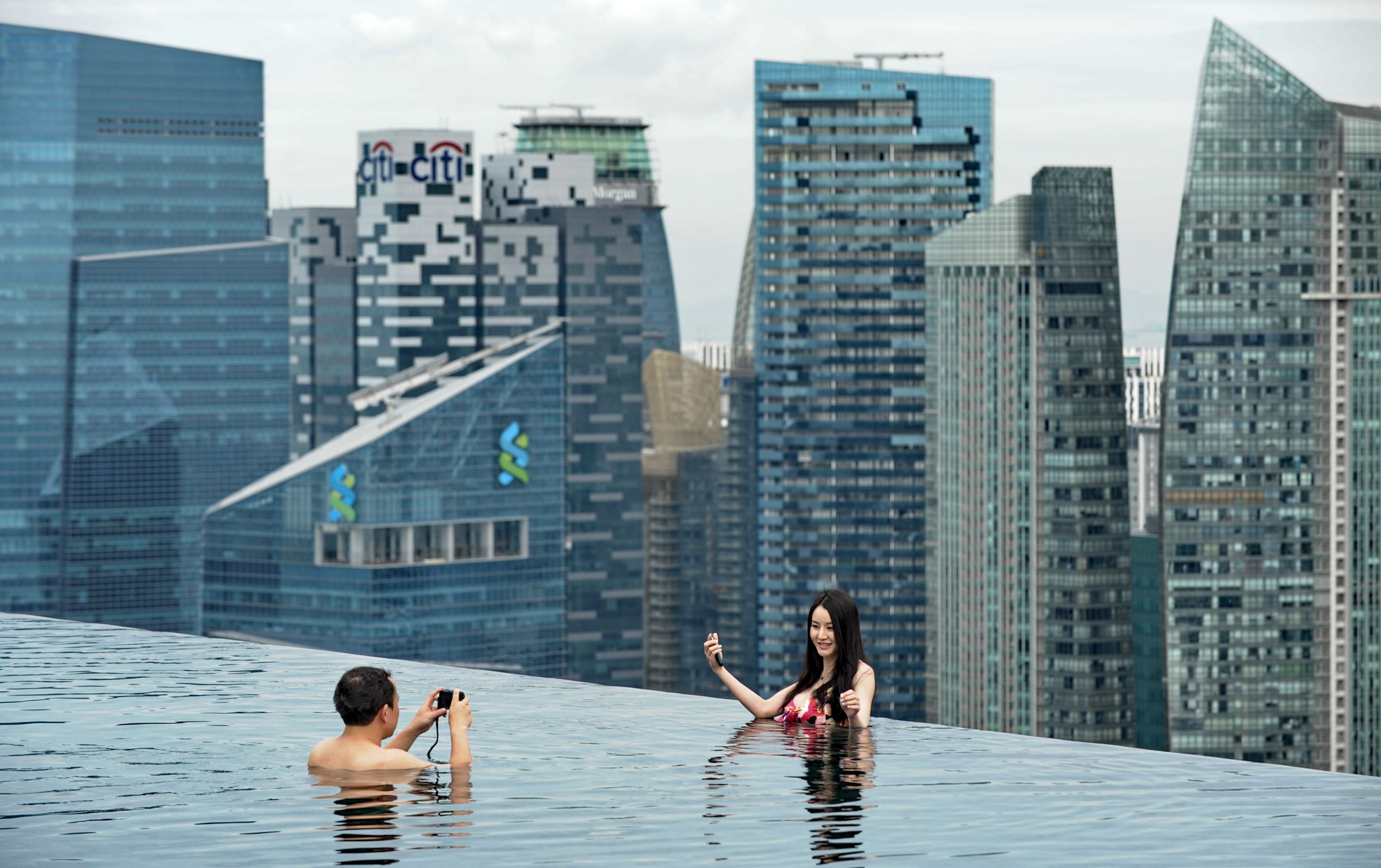 Έχει μήκος 150 μέτρα, στον 57ο όροφο, και βρίσκεται στην ταράτσα του ξενοδοχείου Marina Bay Sands, η πισίνα αυτή είναι απο τις μεγαλύτερες του είδους της και προσφέρει μοναδική θέα.